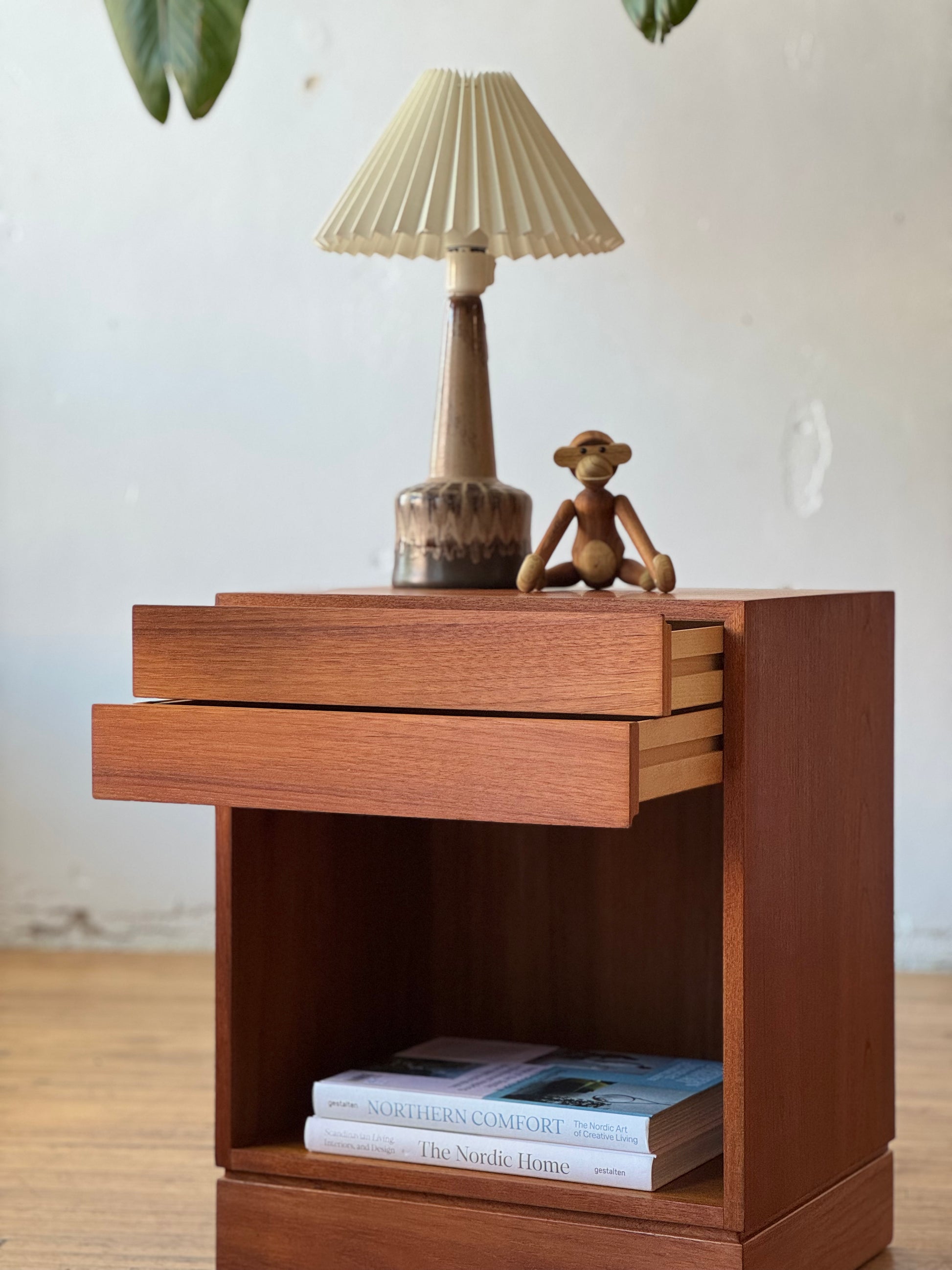 A Danish teak side or bedside table by Arne Wahl Iversen, showcasing clean lines and refined Scandinavian craftsmanship. Its warm teak finish and elegant proportions make it a versatile accent, perfect for adding both function and mid-century style to any room.