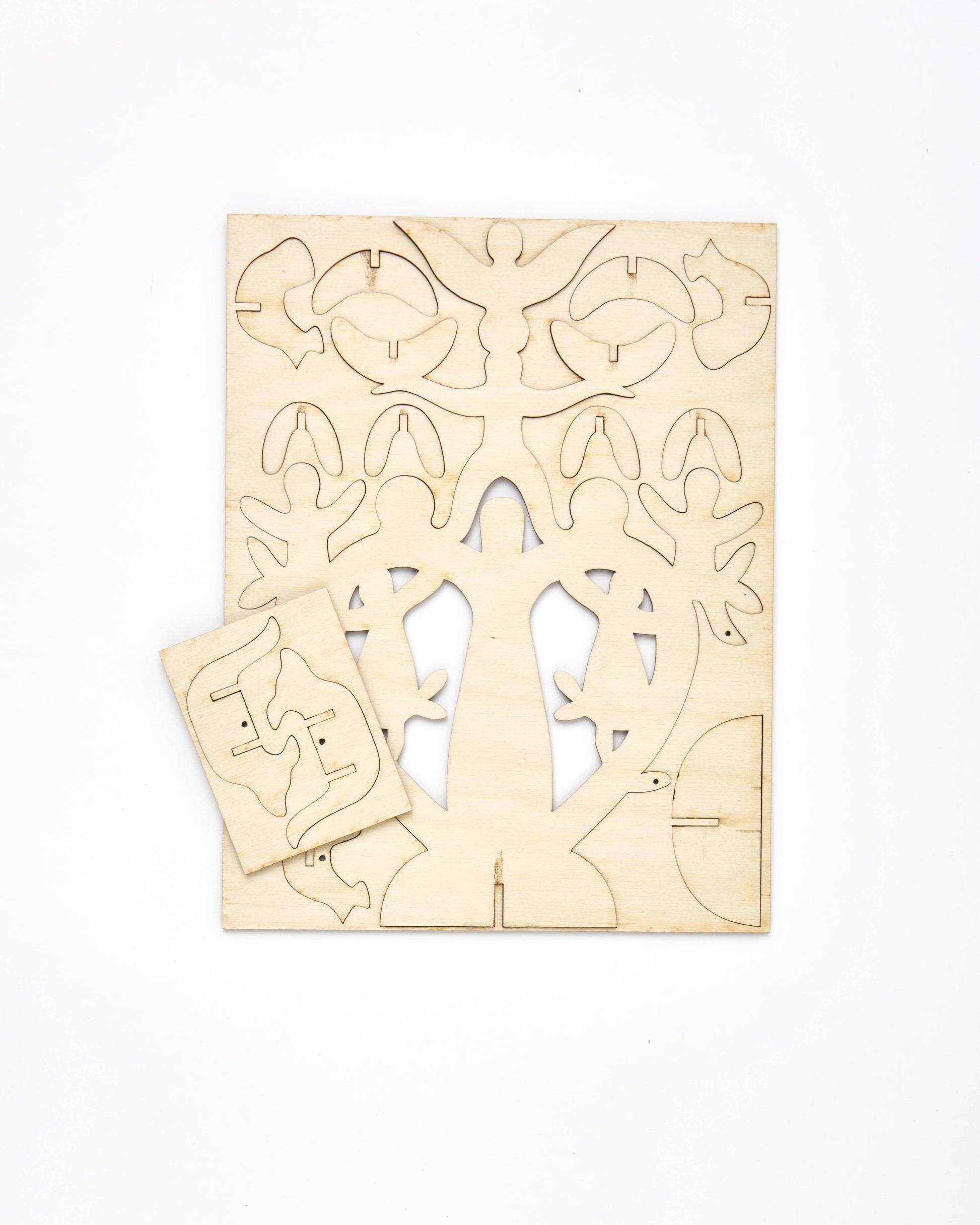 The kit is made of plywood and unpainted and comes with assembly information. Decorate it with acrylic paint or markers. Approximate dimensions of tree of life: 10 3/4" high x 10 3/4" wide