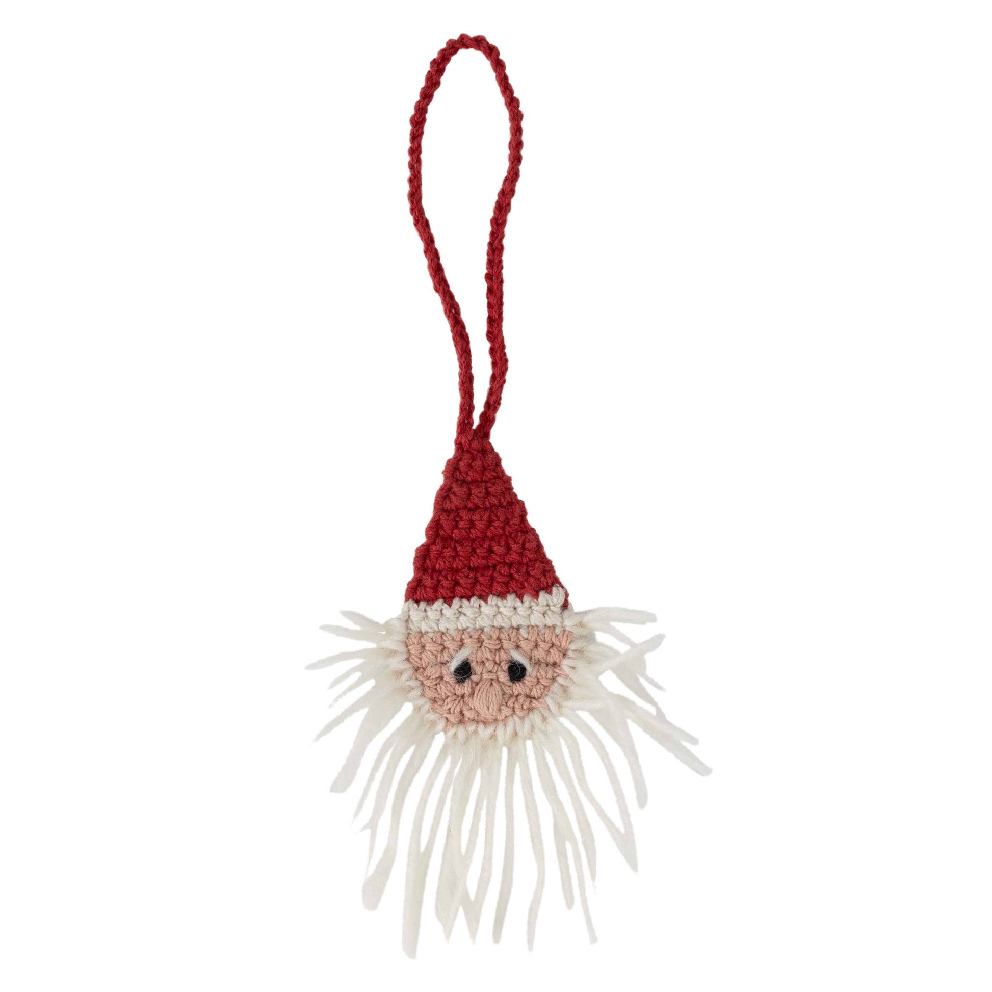 Oh My! Santa Ornament, just like Grandma used to make. Crocheted by hand from cotton and wool, this sweet Santa is ready to hang on your tree, attach as a present topper or easily pop into the mail for a faraway friend or family holiday gift. A touch of old-world charm for Christmas.