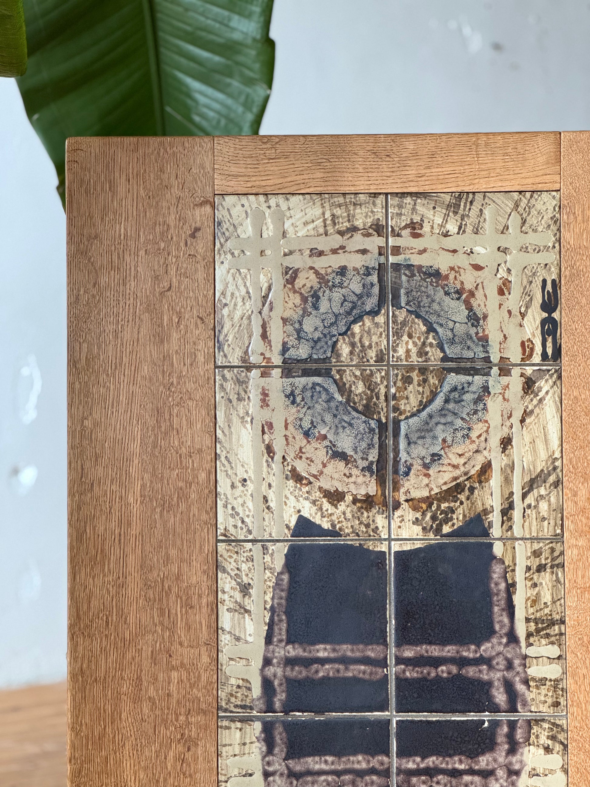 Danish Brutalist Oak & Tile Coffee Table by Henning Kjaernulf #2735