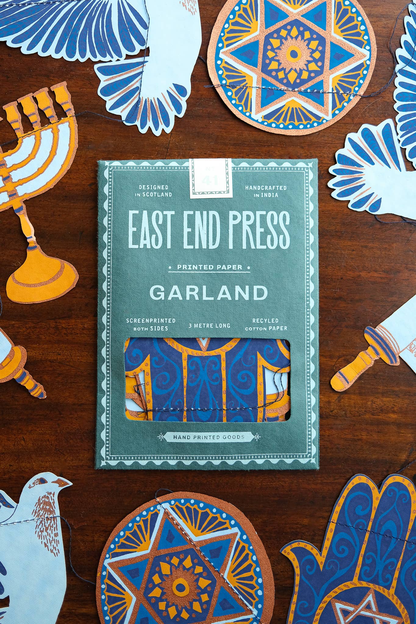 Includes 10 paper shapes, sewn along strong cotton thread - Screen printed by hand on both sides by talented artisans in Jaipur - Sustainably made from recycled materials