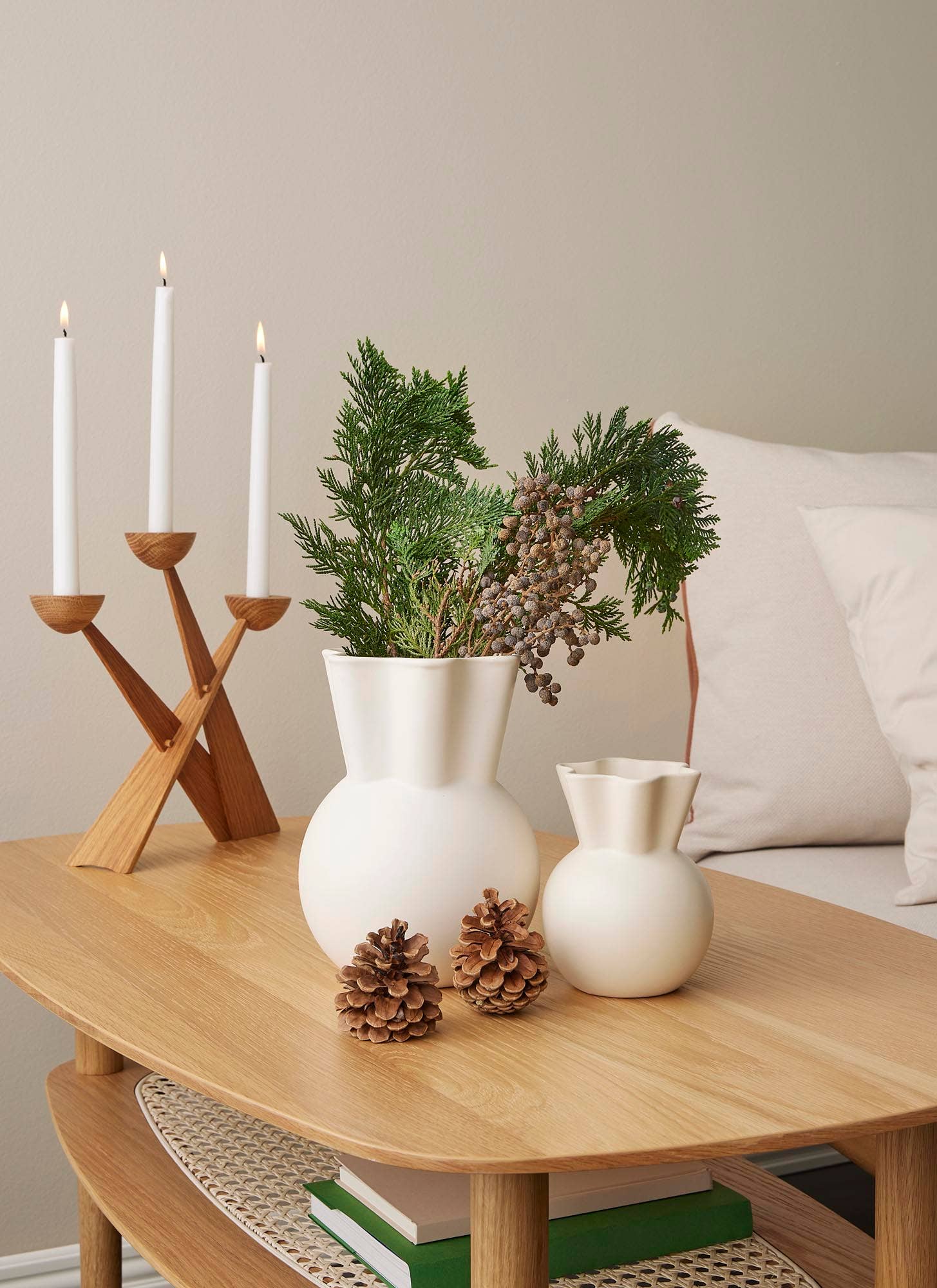 Bring warmth to your home The Svungen Top vase is now available in a smaller version. The truly special thing about this vase is that it is hand-turned in a unique design of soft lines and an organic aesthetic. It’s the ideal vase for small flowers or single stems, but looks equally wonderful on its own. A lovely vase that will add a welcoming warmth to your home. Eva Stæhr-Nielsen: Danish design history When you buy a design by Eva Stæhr-Nielsen, you bring a small piece of Danish design history into your home. Eva Stæhr-Nielsen created her beautiful ceramics in the years 1932-1968, including the Svungen Top vase. The vase is pure beauty in itself, and thanks to its small size, fits perfectly on a bookcase, shelf or on a chest of drawers in the living room.